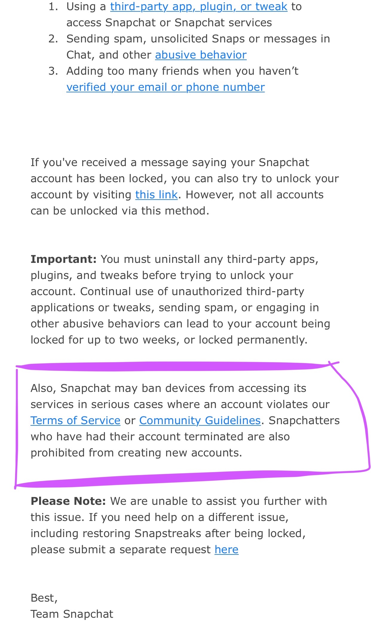 App Snapchat Locking Accounts For 12 Hours For Using Third Party Applications Warning R Sideloaded